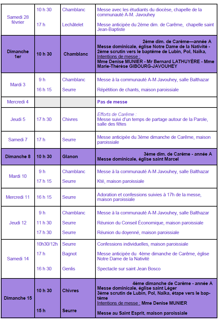 proposée pour la paroisse de Seurre :