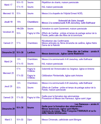 - Mercredi 25 mars à 17h30, église de Pagny le Château