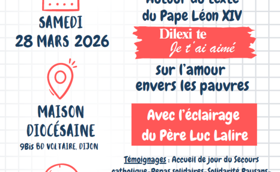 Les mouvements d’Action catholique de Côte-d’Or (ACE, ACI, ACO, CMR, Eccleria, MCR et CCFD) organisent […]